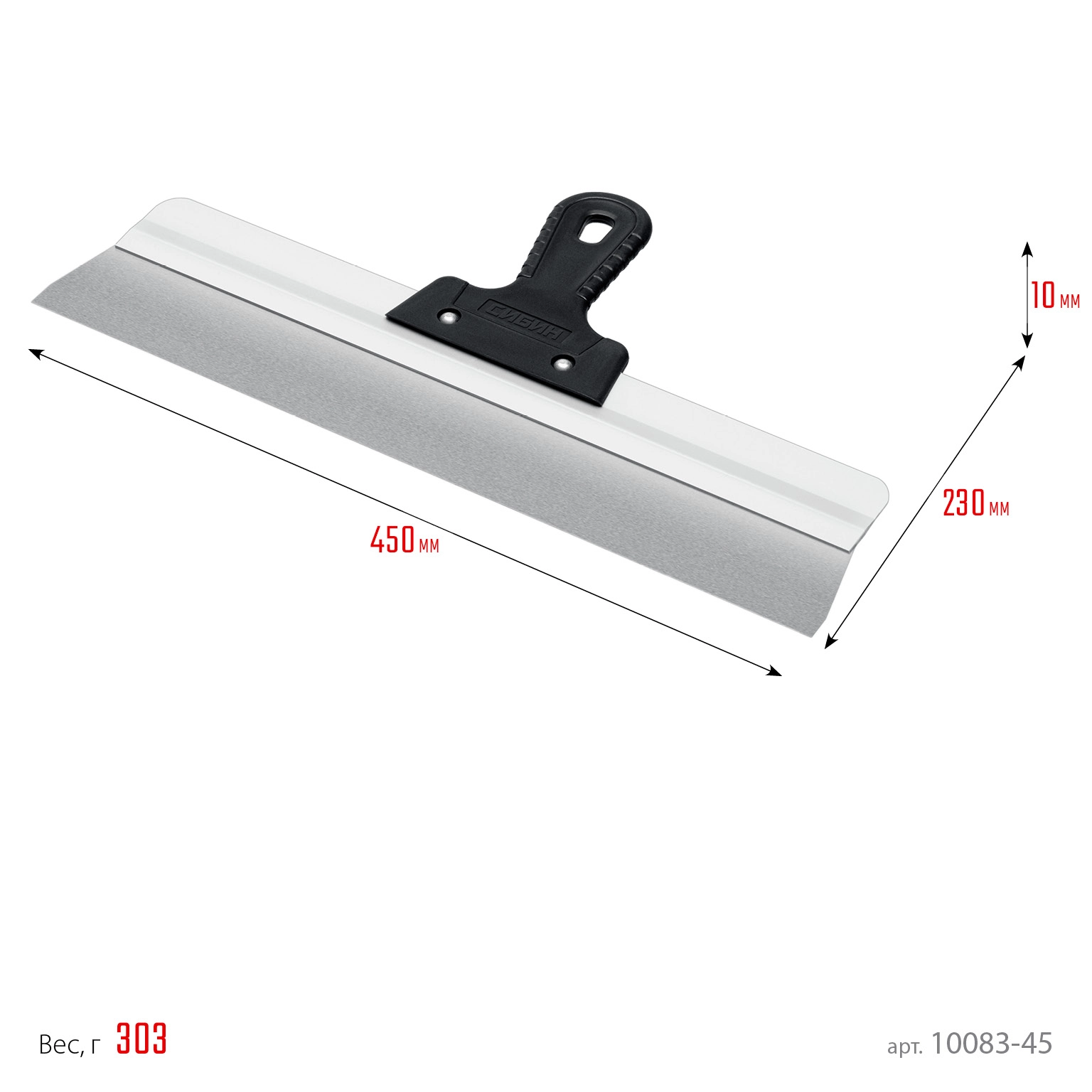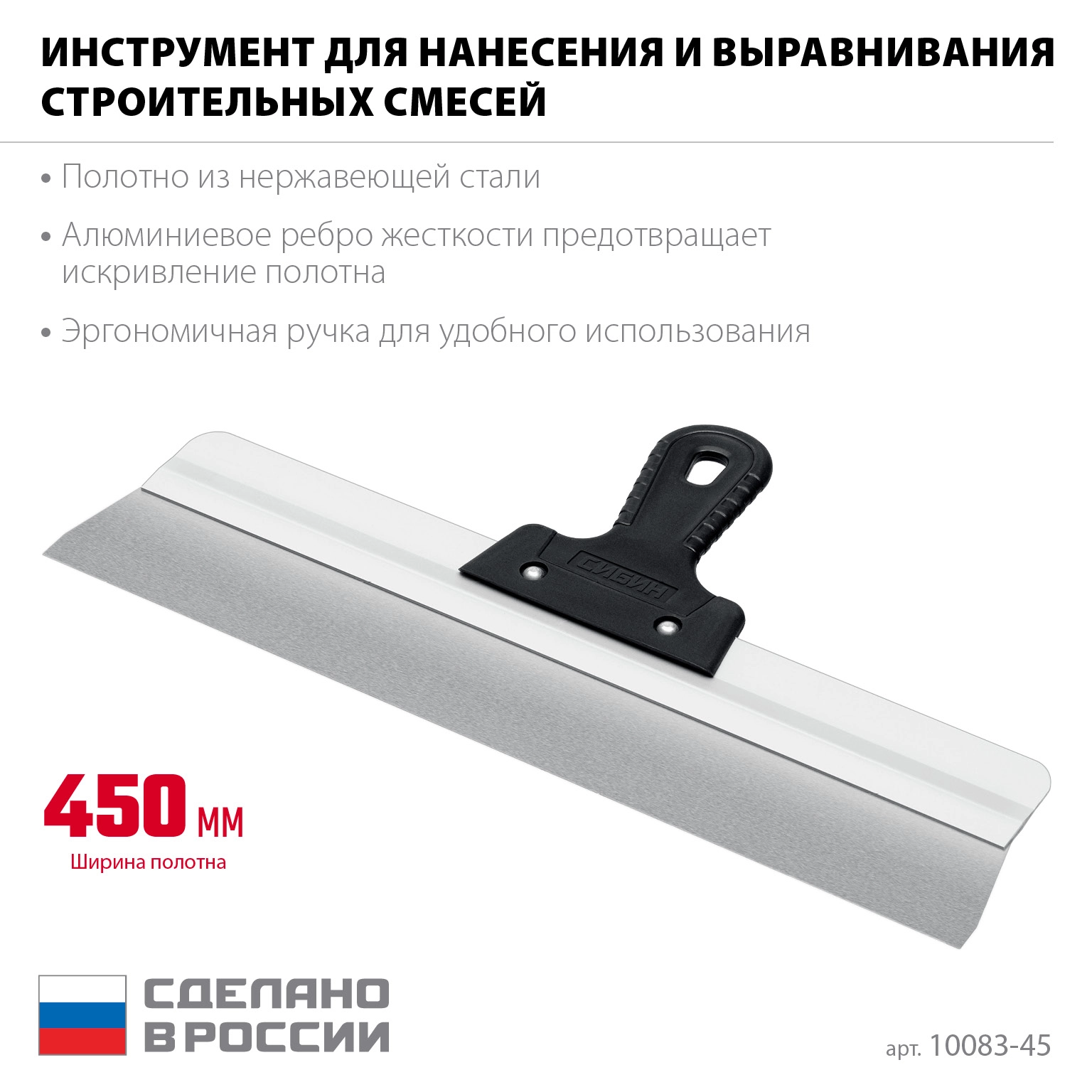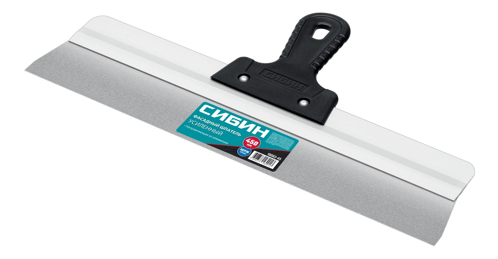 ПроизводителиШпатель нерж. фасад. 450 мм, усиленный, алюм. направляющая (10083-45) СИБИН