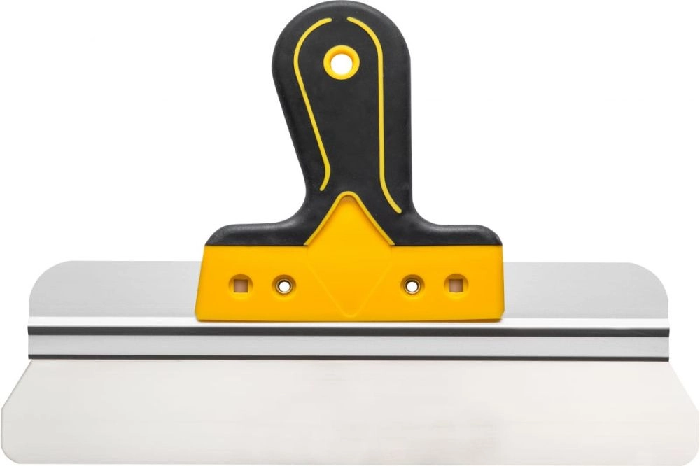 Применяется для нанесения, выравнивания и сглаживания шпаклевочного слоя и других отделочных растворов на больших и малых поверхностях. Выбор ширины полотна зависит от площади обрабатываемой поверхности. Сразу после использования шпатель нужно очистить водой, затем протереть насухо.
