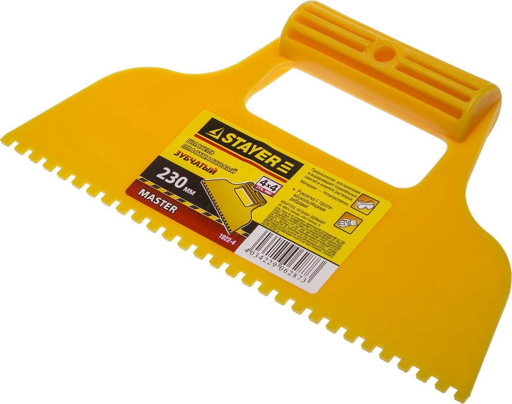 ПроизводителиШпатель зубчатый пласт. 230 мм/ 4 мм (1022-4) STAYER