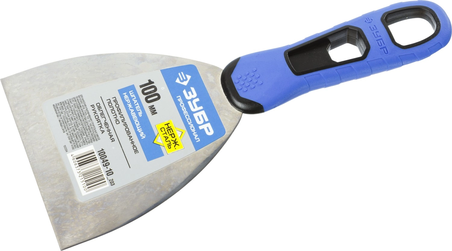 ПроизводителиШпатель нерж. фасад. 100 мм, профилир. полотно, двухкомп. рук. "ПРОФЕССИОНАЛ" (10049-10_z03) ЗУБР