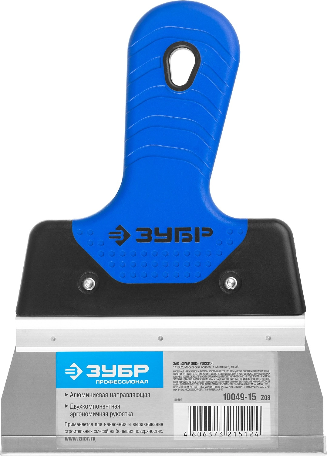 ПроизводителиШпатель нерж. фасад. 150 мм, профилир. полотно, двухкомп. рук. "ПРОФЕССИОНАЛ" (10049-15_z03) ЗУБР