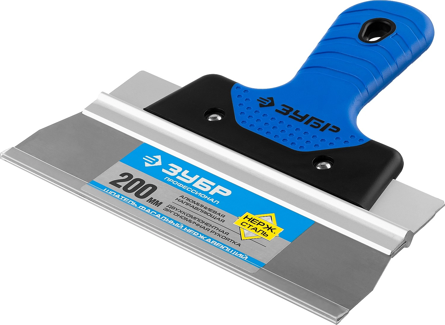 ПроизводителиШпатель нерж. фасад. 200 мм, профилир. полотно, двухкомп. рук. "ПРОФЕССИОНАЛ" (10049-20_z03) ЗУБР