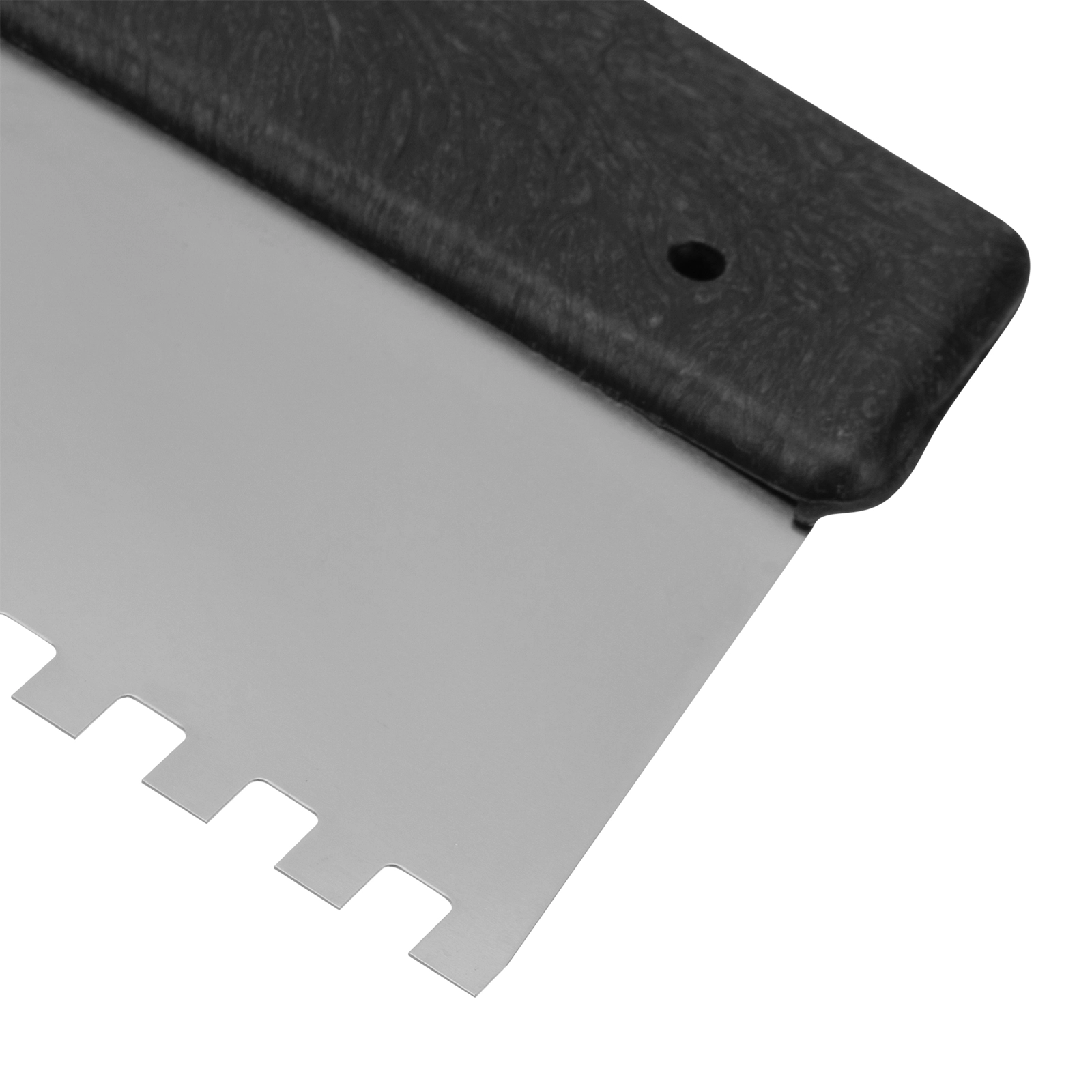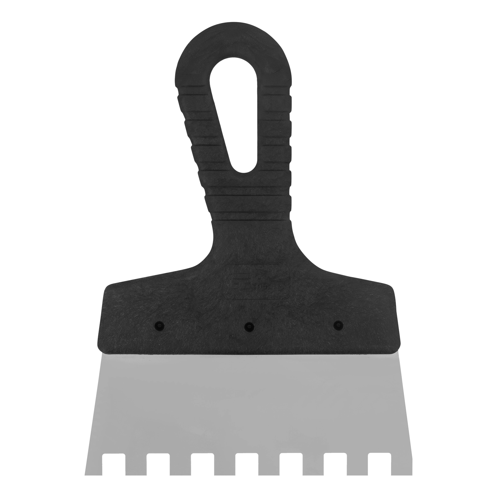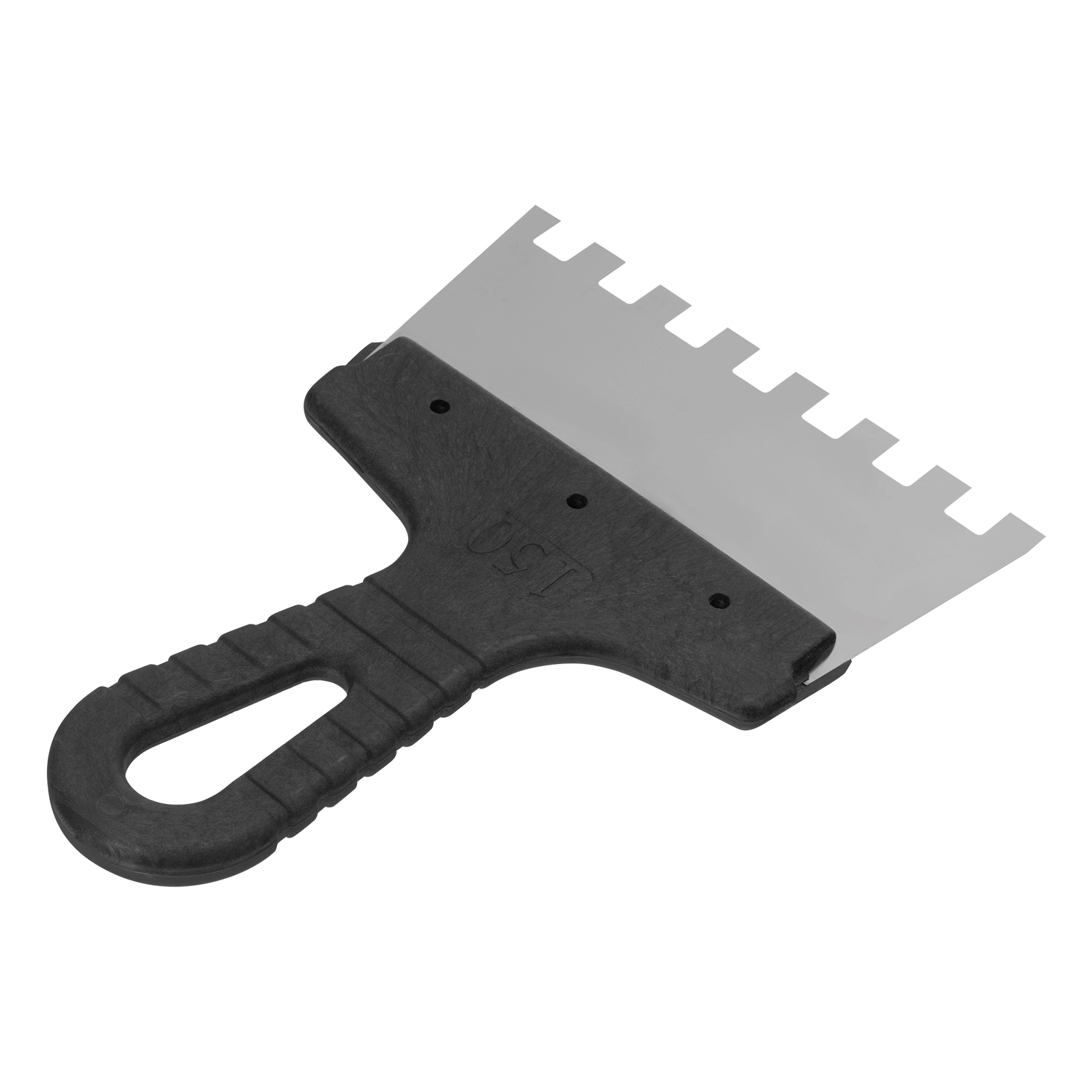 ПроизводителиШпатель зубчатый нерж. фасад. 150 мм/ 10 мм, пласт. рук. (85480) СИБРТЕХ