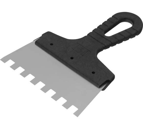 Бренд: СибртехШпатель Сибртех 85480 из нержавеющей стали, шириной 150 мм, с пластмассовой рукояткой и зубьями 10 х 10 мм, применяется во время проведения работ по укладке плитки, мозаики и т. д. Квадратные зубья облегчают нанесение клеевого состава, позволяя равномерно распределять его по поверхности. Зубья размером 10 х 10 мм рассчитаны на плитку площадью 900-2500 см2.