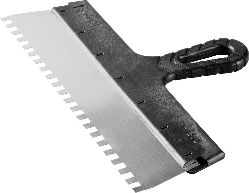 ПроизводителиШпатель зубчатый нерж. фасад. 350 мм/ 8 мм, пласт. рук. "МАСТЕР" (10078-35-08) ЗУБР