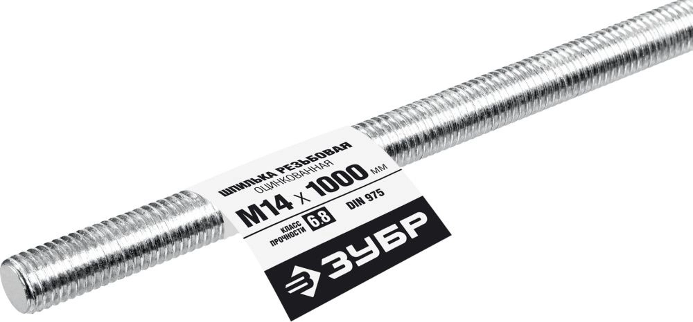 ПроизводителиШпилька резьбовая DIN 975, кл. пр. 6.8, М14х1000мм, 1 шт, Профессионал (30336-14-1) ЗУБР