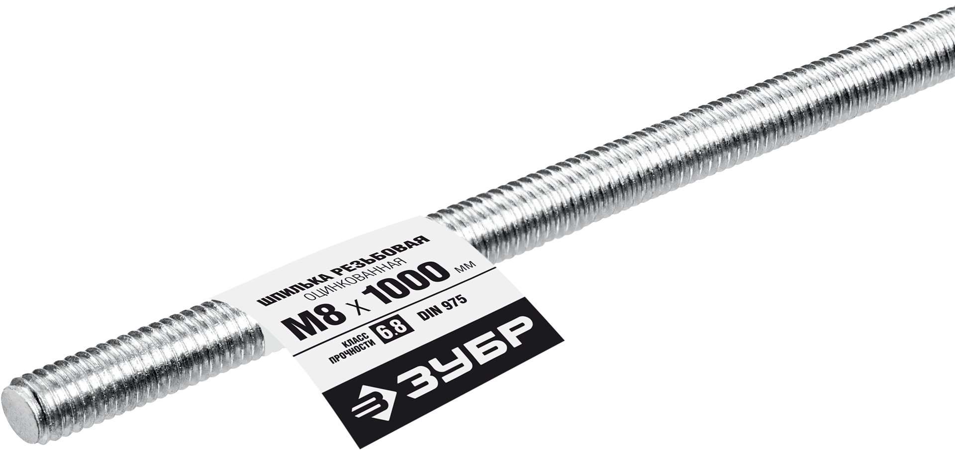 ПроизводителиШпилька резьбовая DIN 975, кл. пр. 6.8, М8х1000мм, 1 шт, Профессионал (30336-08-1) ЗУБР