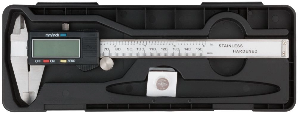 Для наружных и внутренних измерений. С электронным отсчетом. Точность 0,02 мм. В пластиковом футляре. Питание: батарейка SR44 (входит в комплект поставки). Материал: нержавеющая сталь.Производитель: