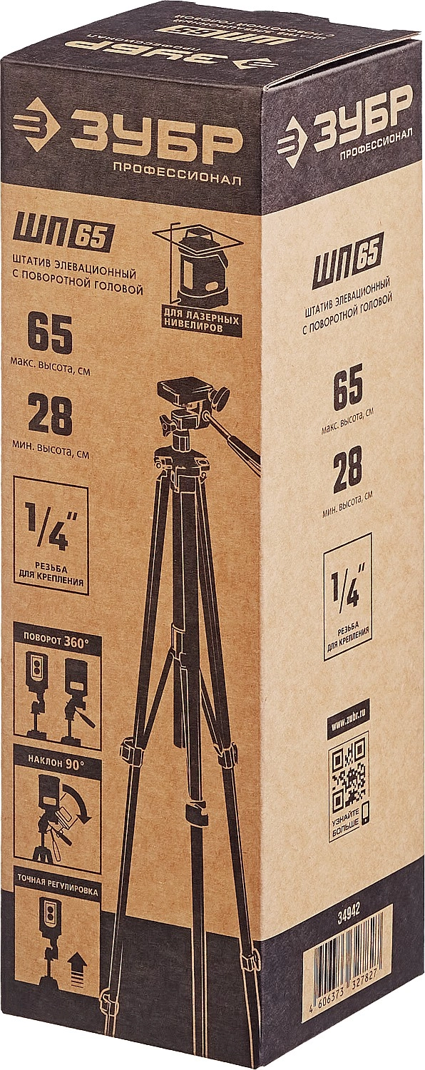 ПроизводителиШтатив элевационный, 28/65см, резьба 1/4" "ШП-65" (34942) ЗУБР