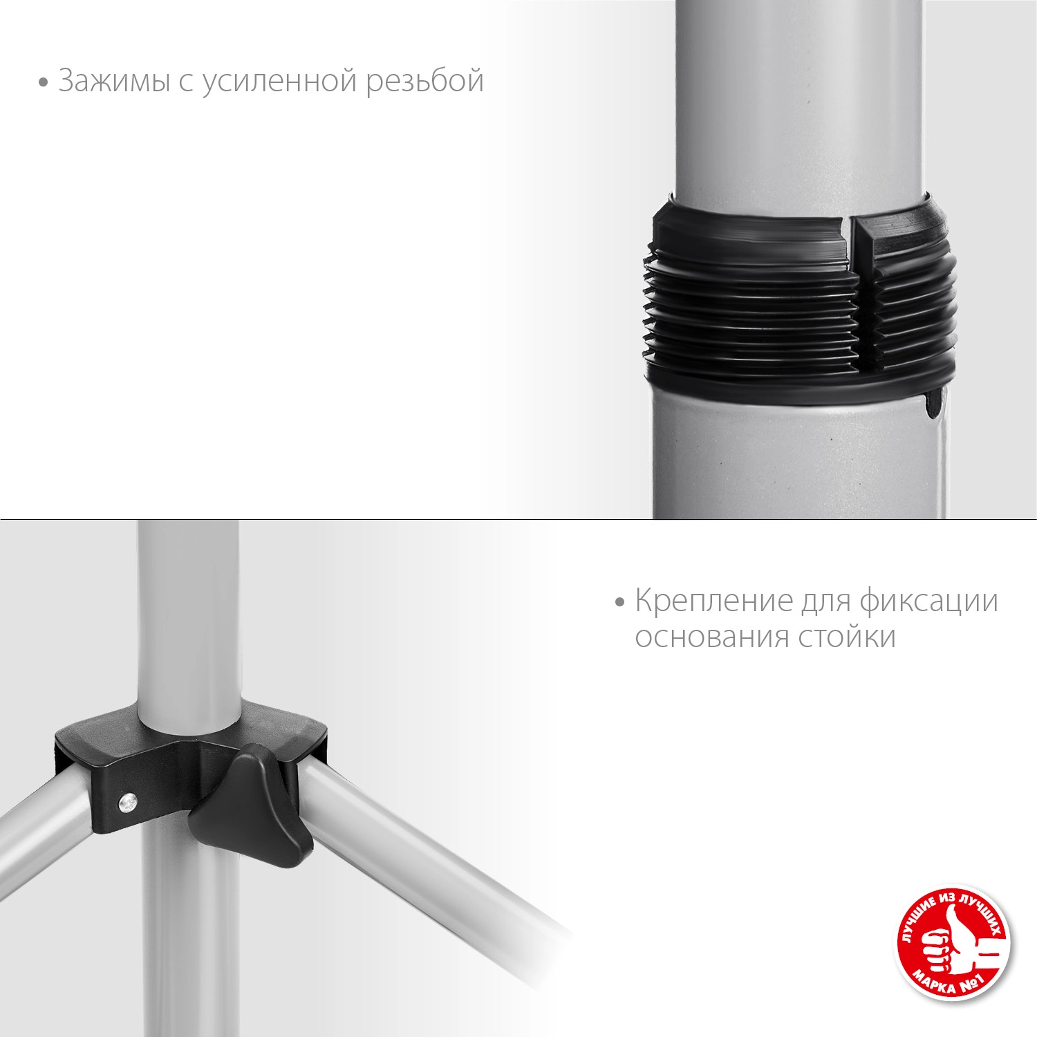 Бренд: ЗУБРШтатив ЗУБР предназначен для установки прожекторов. Телескопическая конструкция позволяет регулировать высоту установки от 65 до 160 см. Горизонтальная перекладина позволяет одновременно установить 2 прожектора. Легкий и быстрый монтаж. Изготовлен из высокопрочной стали и выдерживает нагрузку до 8 кг. Размер в сложенном виде — 10х63 см. Диаметр основания треноги — 96 см.