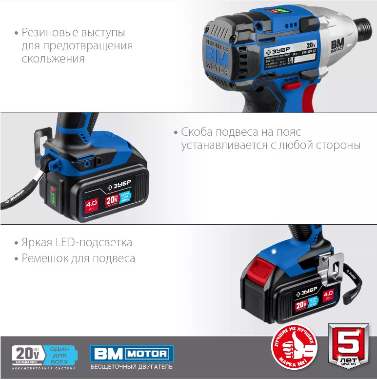Винтоверт ударный аккум. GVB-250-42 (20.0 В, 2 акк. х 4.0 А/ч Li-Ion, 280 Нм, чем.) Проф. ЗУБР633.43 руб.102.19 руб. за шт143.94 руб. за штЗарядное устройство 16-20В 1шт 6.0 А/ч Li-Ion PRO, тип Т7 "ПРОФЕССИОНАЛ" (RT7-20-6) ЗУБРАртикул: RT7-20-6137.57 руб. за штЭкономия 1 017.13 руб.Аккумуляторы для электроинструмента 0Биты-насадки 2Артикул: 2.607.019.50333.32 руб. за штПилы циркулярные 1Артикул: CPB-190354.02 руб. за штПохожие товарыКод товара: 0041883360.66 руб. Скидка 6% 339.02 руб. за штКод товара: 0080590175.03 руб. Скидка 2% 170.83 руб. за штКод товара: 0045811Аккумуляторный инструмент для работы с крепежом до М12 и электронной регулировкой силы затягивания. Питание 18 В, литиевый аккумулятор в комплект поставки не входит. Вес не более 1,5 кг, длина 135 мм764.09 руб. за штКод товара: 0080589422.22 руб. Скидка 4% 405.34 руб. за шт - Оснастка к электроинструментам