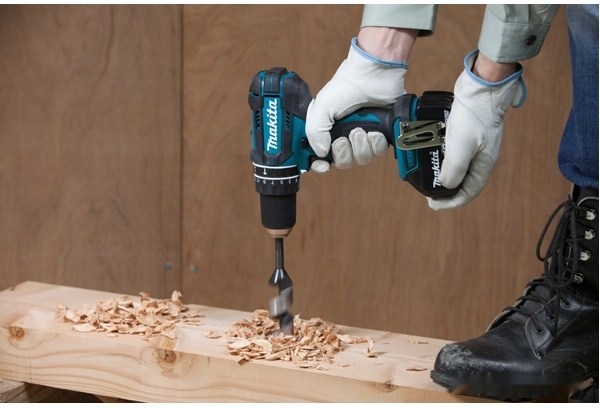 При сверлении дрелью Makita DHP482Z отверстий в дереве их диаметр может составлять 38 мм, а при работе в качестве шуруповерта изделию подвластен крепеж до М6 или шурупы 10х90 мм. Работа в этом режиме предполагает настройку крутящего момента – его можно уменьшить с помощью кольца настройки на 21 положение до 36 Нм. Скорость вращения патрона изменяется в инструменте традиционно – от нуля до максимального значения при увеличении давления на курок.