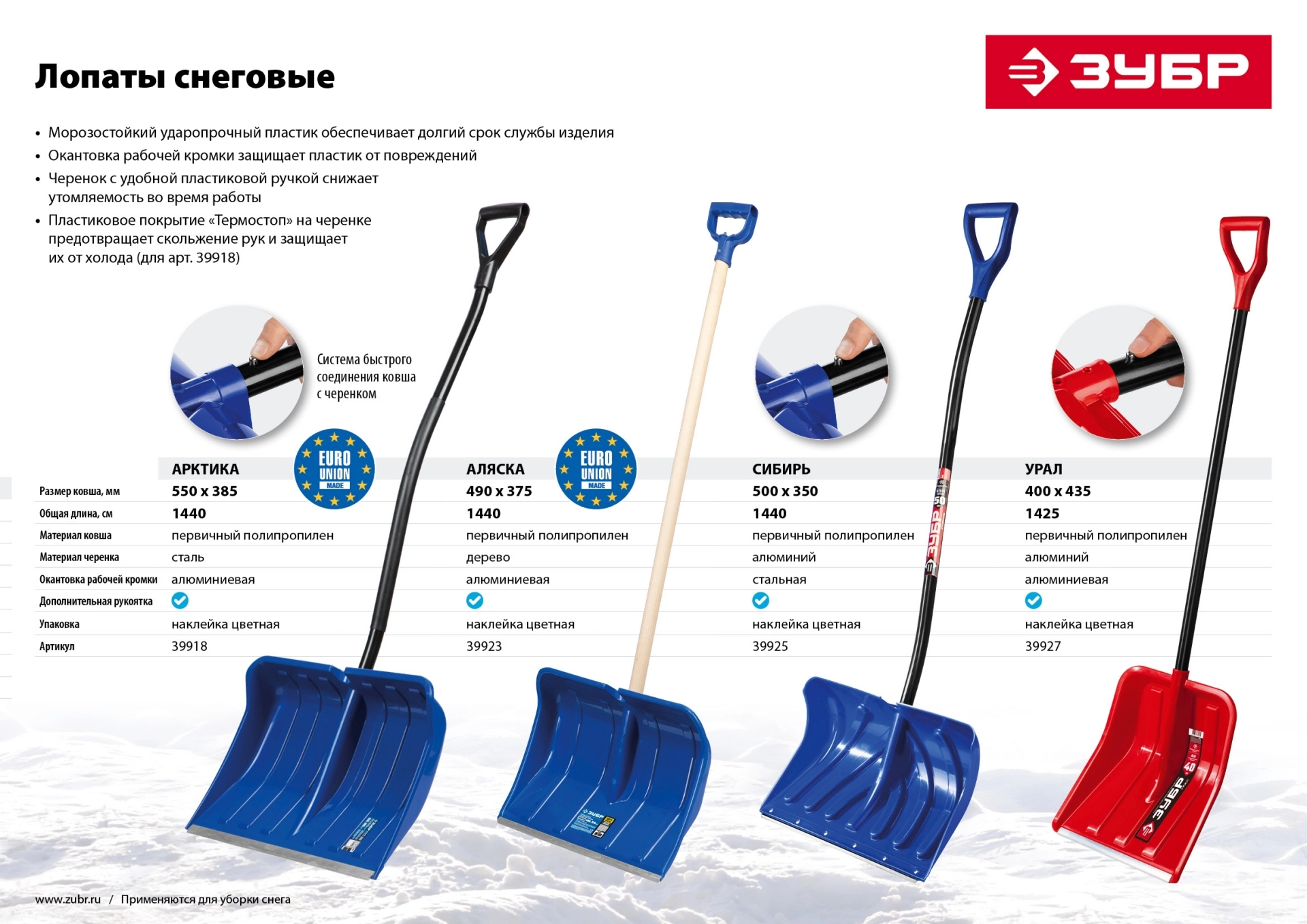 Бренд: ЗУБРСнеговые лопаты ЗУБР - лучшее решение для уборки снега. Высокая надежность и долговечность, малый вес и отличные эксплуатационные характеристики.