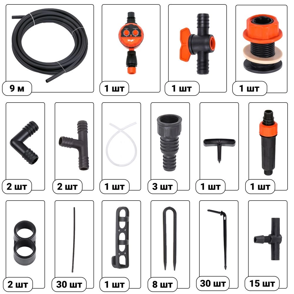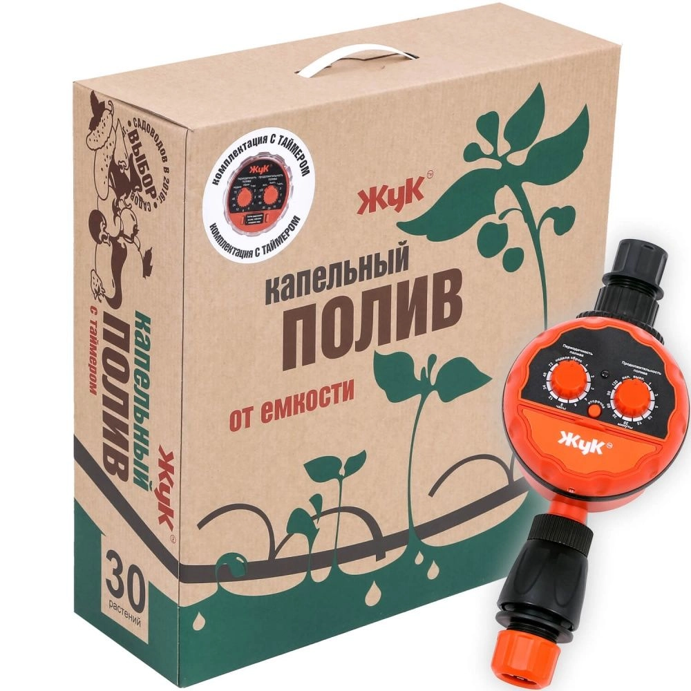 ПроизводителиСистема капельного полива от емкости, 30 растений с таймером (7573-00) ЖУК
