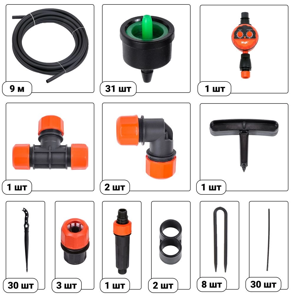 ПроизводителиСистема капельного полива от водопровода, 30 растений с таймером (8211-00) ЖУК