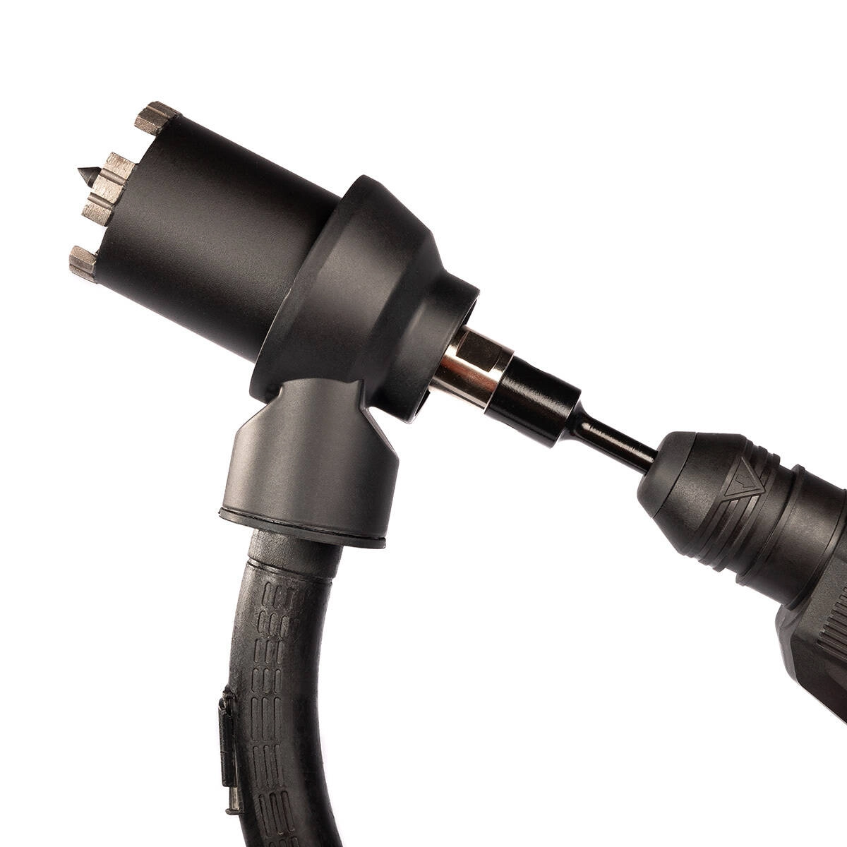 - Система пылеудаления обеспечивает комфортное сверление отверстий алмазными коронками с верхним пылеотводом;