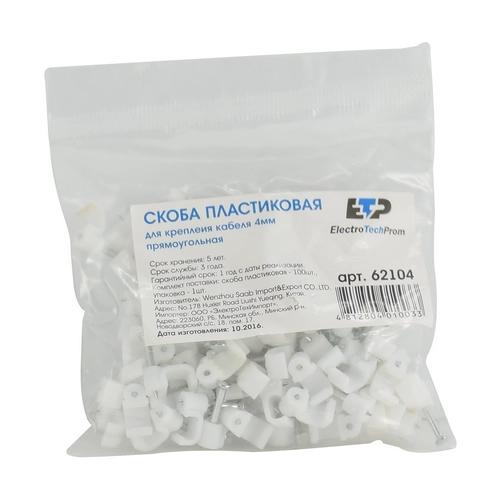 ПроизводителиСкоба крепежная 4мм плоская (уп/100шт) 62104 ETP