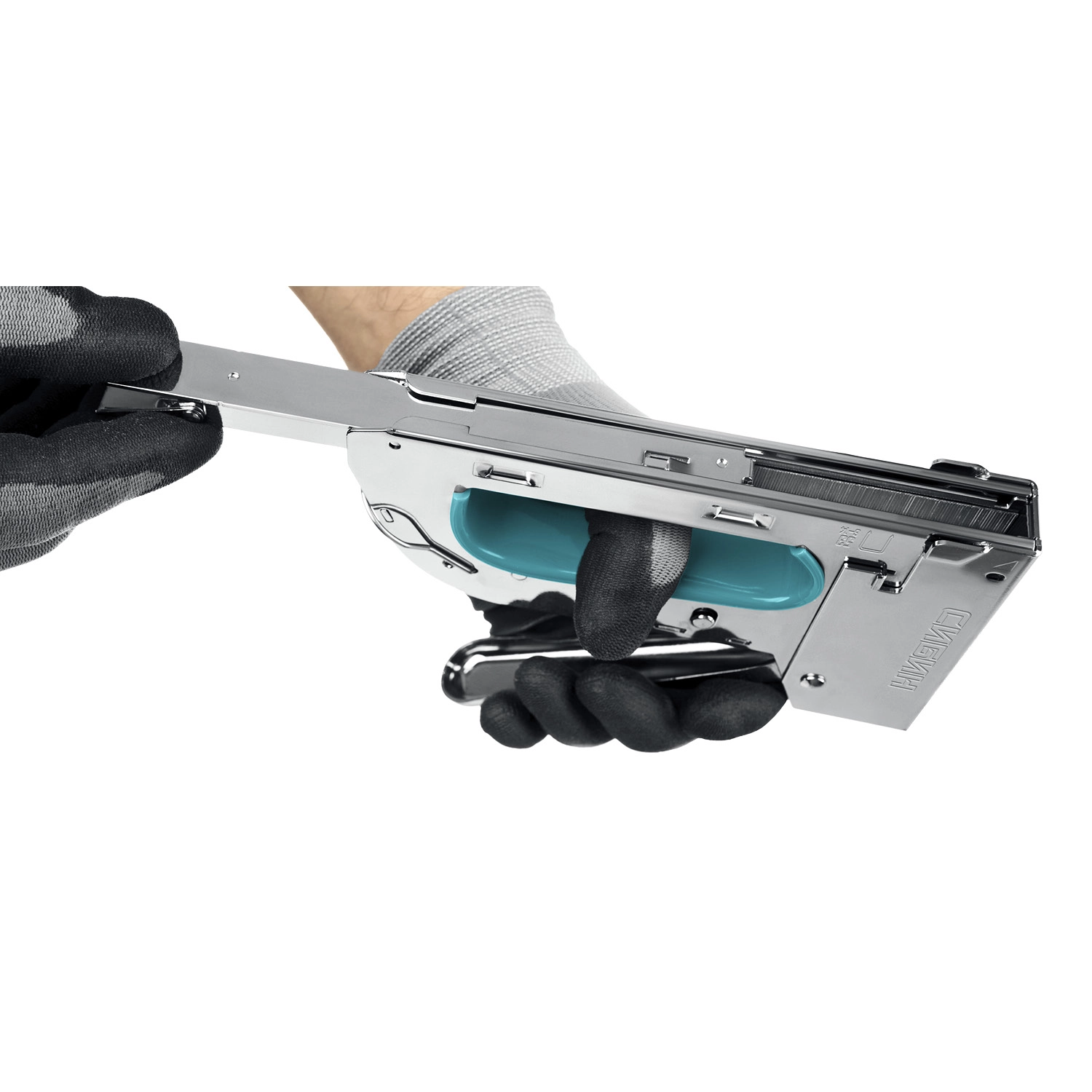 Степлер с ударным механизмом рессорного типа, увеличенная мощность, удар без отдачи.