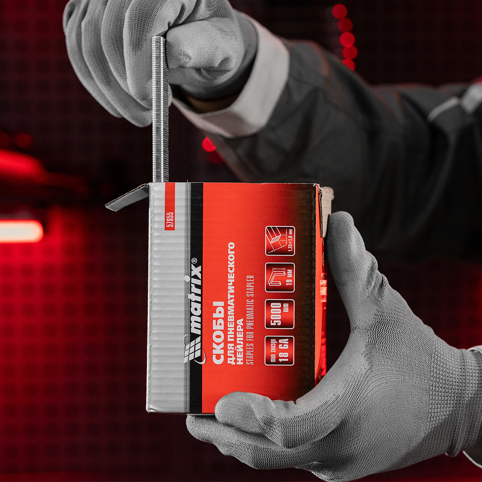 ПроизводителиСкобы 18GA для пнев. степлера 1,25х1,0мм длина 19мм ширина 5,7мм, 5000шт (57655) MATRIX