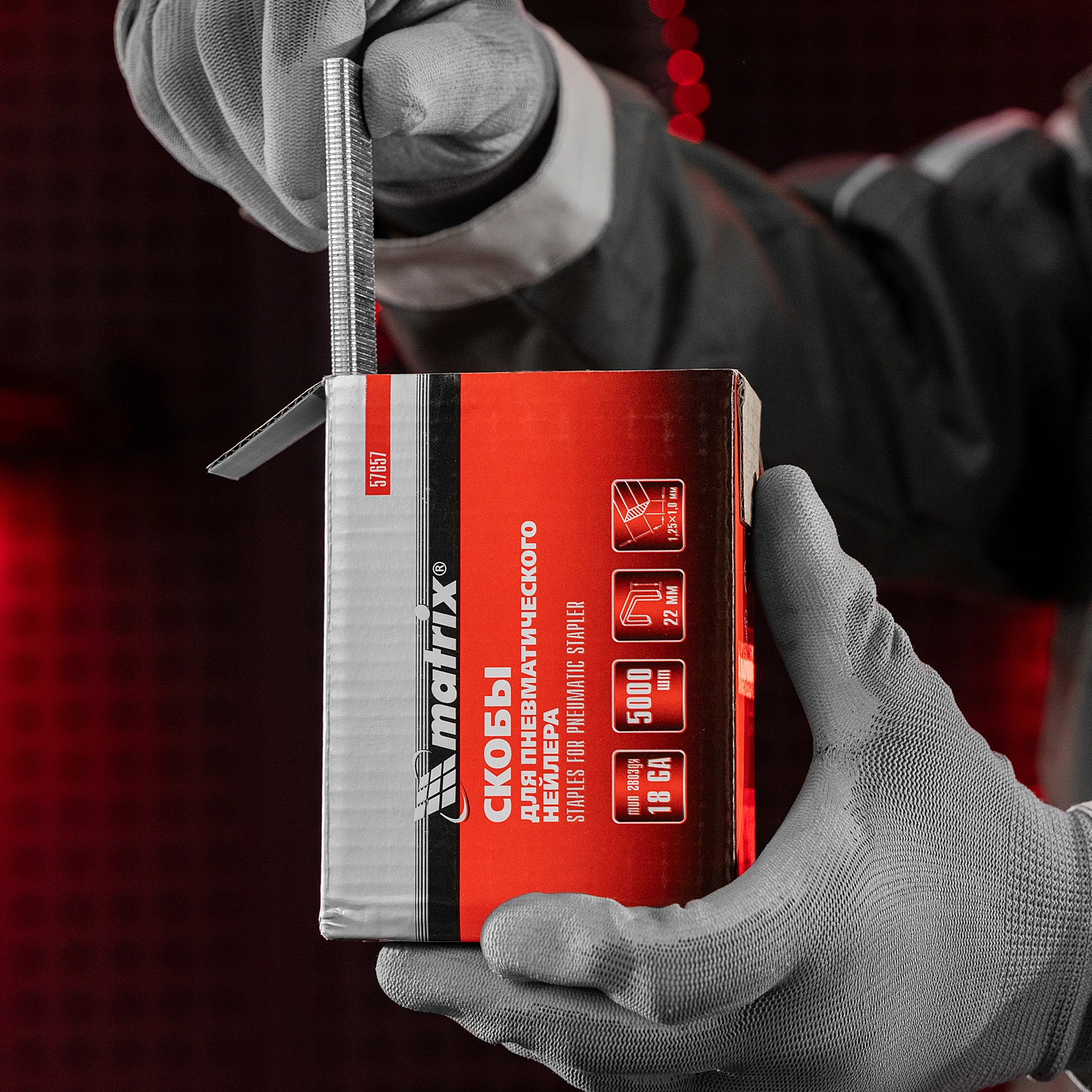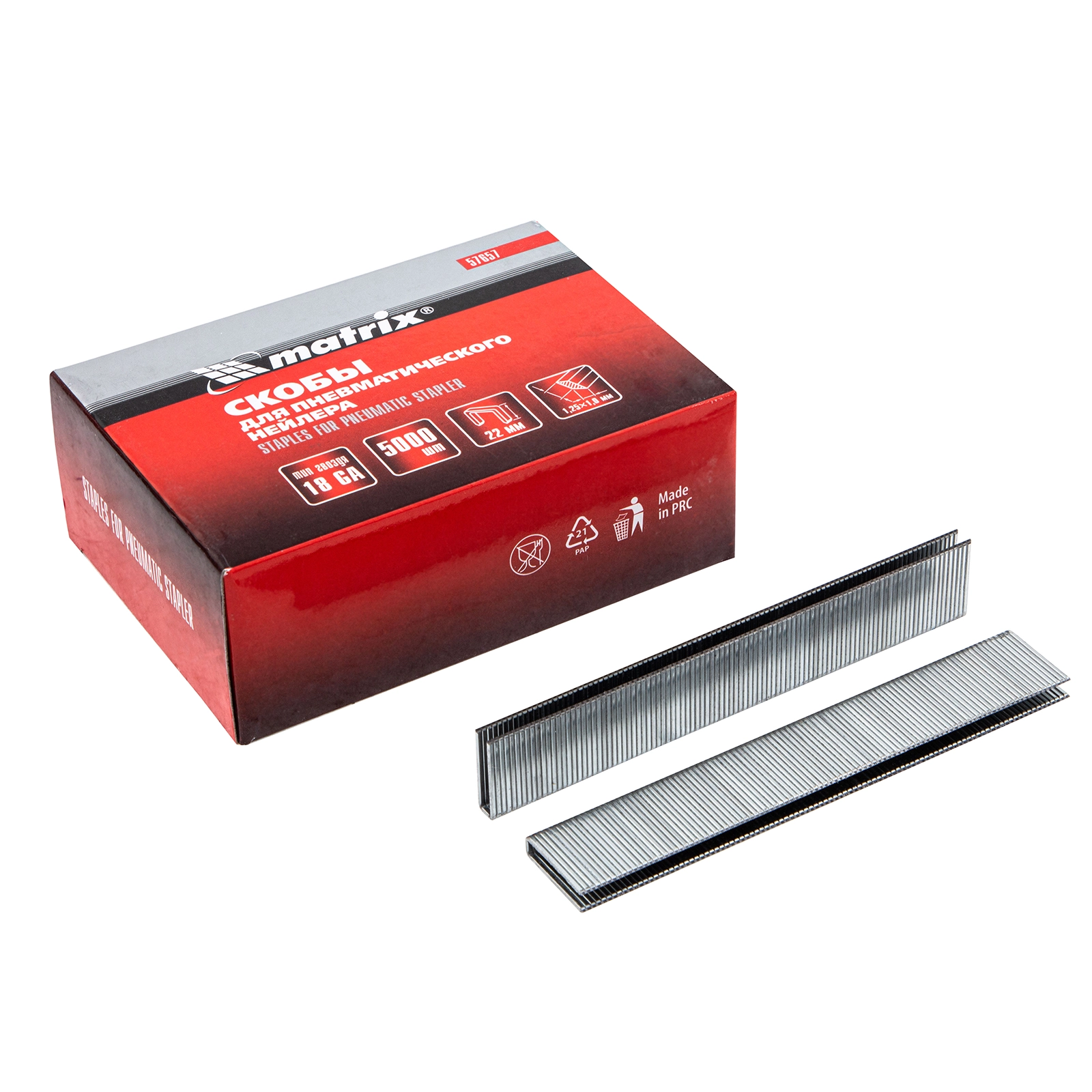 ПроизводителиСкобы 18GA для пнев. степлера 1,25х1,0мм длина 22мм ширина 5,7мм, 5000шт (57657) MATRIX