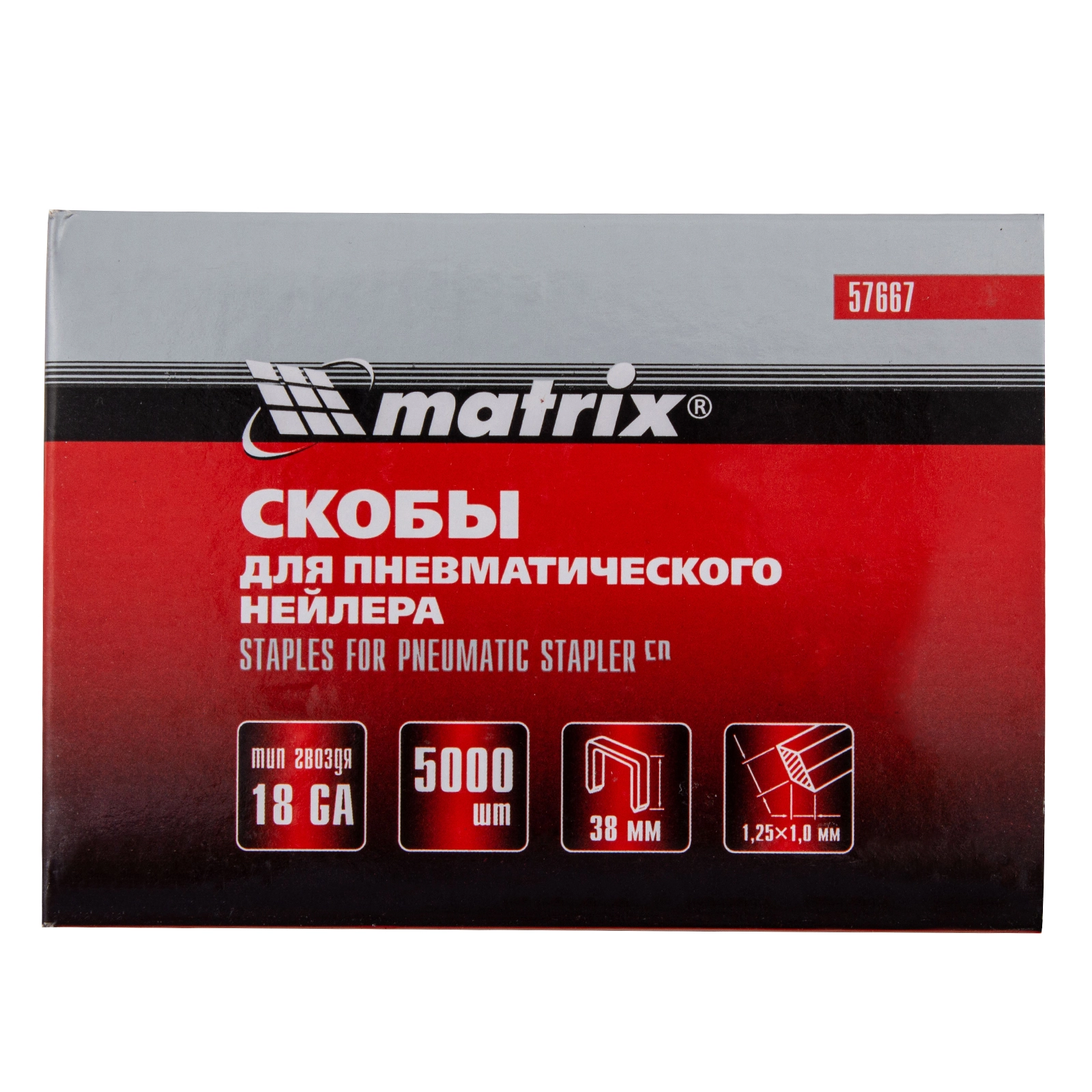 ПроизводителиСкобы 18GA для пнев. степлера 1,25х1,0мм длина 38мм ширина 5,7мм, 5000шт (57667) MATRIX