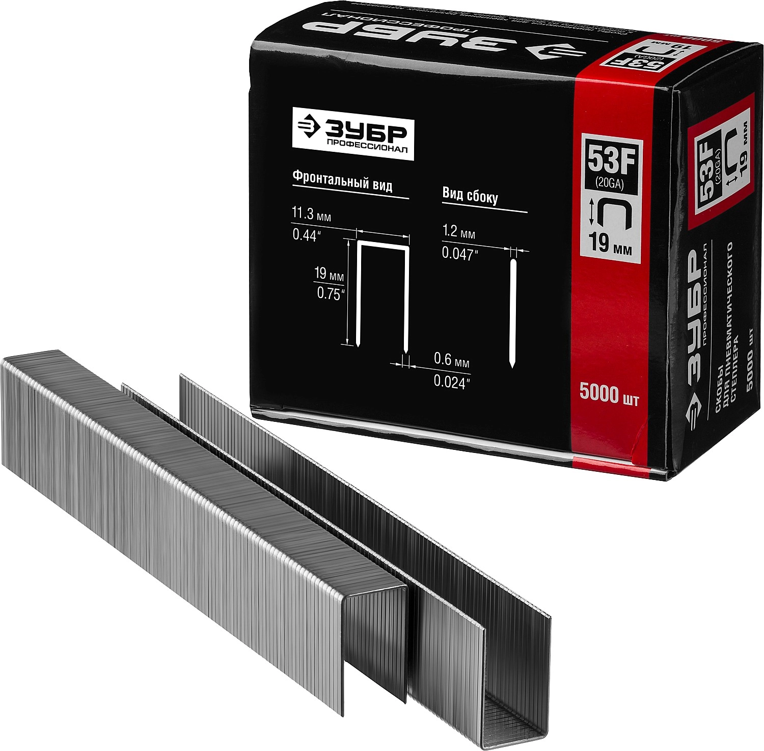 ПроизводителиСкобы для степлера плоские тип 53F, 19 мм, 5000 шт. (31950-19) ЗУБР