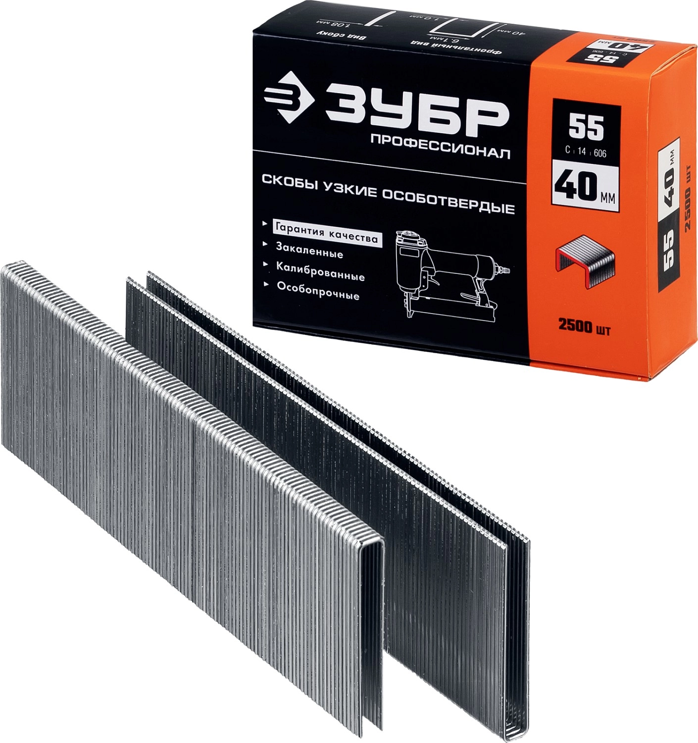 ПроизводителиСкобы для степлера узкие тип 55, 40 мм, 2500 шт. (31855-40) ЗУБР