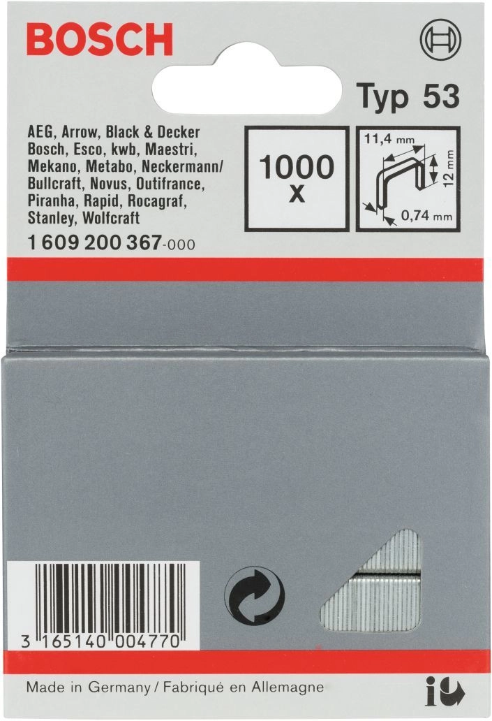 ПроизводителиСкобы металлические тип 53, 12/11.4, 1000 шт. (1 609 200 367) BOSCH