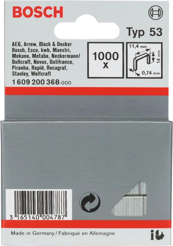 ПроизводителиСкобы металлические тип 53, 14/11.4, 1000 шт. (1 609 200 368) BOSCH