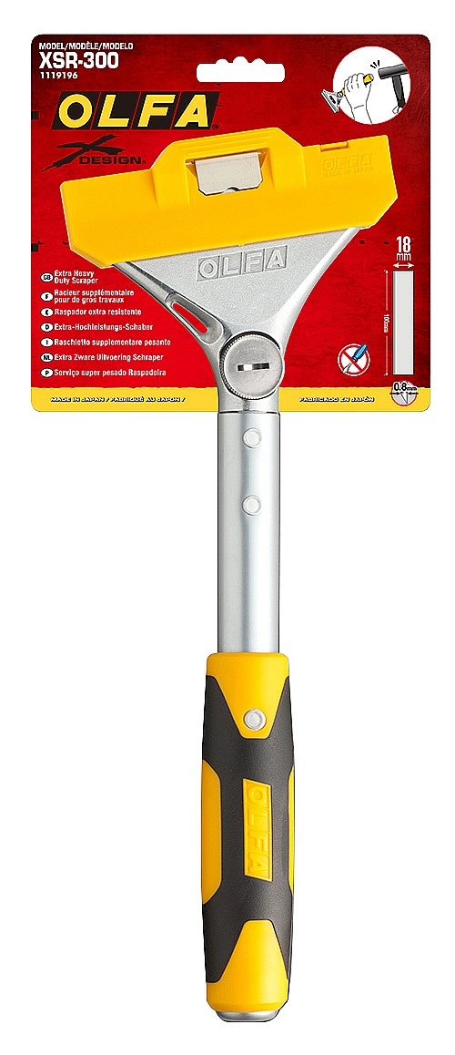 Скребок OLFA OL-XSR-300, предназначен для зачистки поверхностей от различных загрязнений. Повышенная безопасность, удобство в использовании и выделяющийся внешний вид. Прорезиненная металлическая рукоять, состоящая из мягкой черной части и более жесткой желтой, обеспечивает удобный хват и предотвращает выскальзывание скребка из рук. Никелированный винт для надежной фиксации лезвия. Защитная крышка для лезвия. Металлический затыльник для ударных работ. Отверстие для подвешивания.Производитель: Крафтул И/Е Гмбх, Альтер Поствег Штр., Лоенинген, Германия