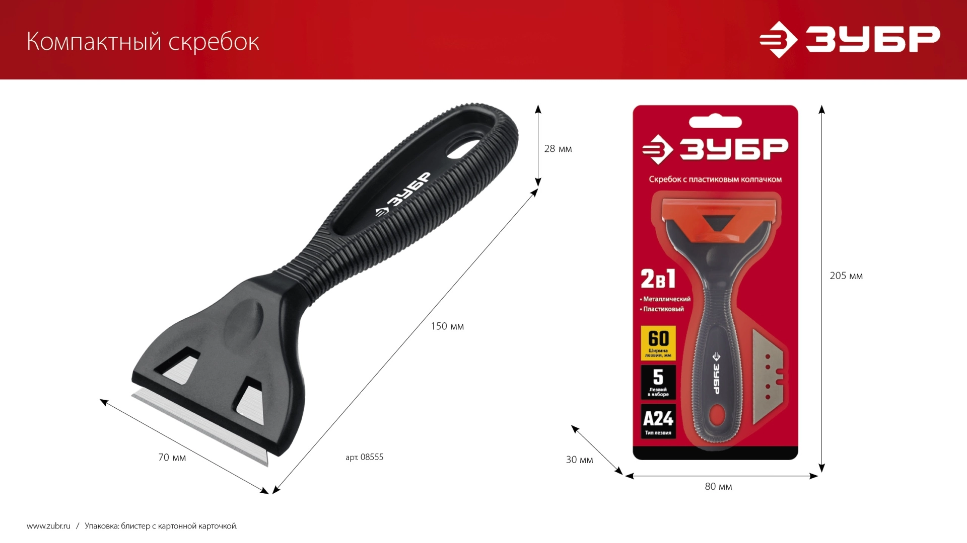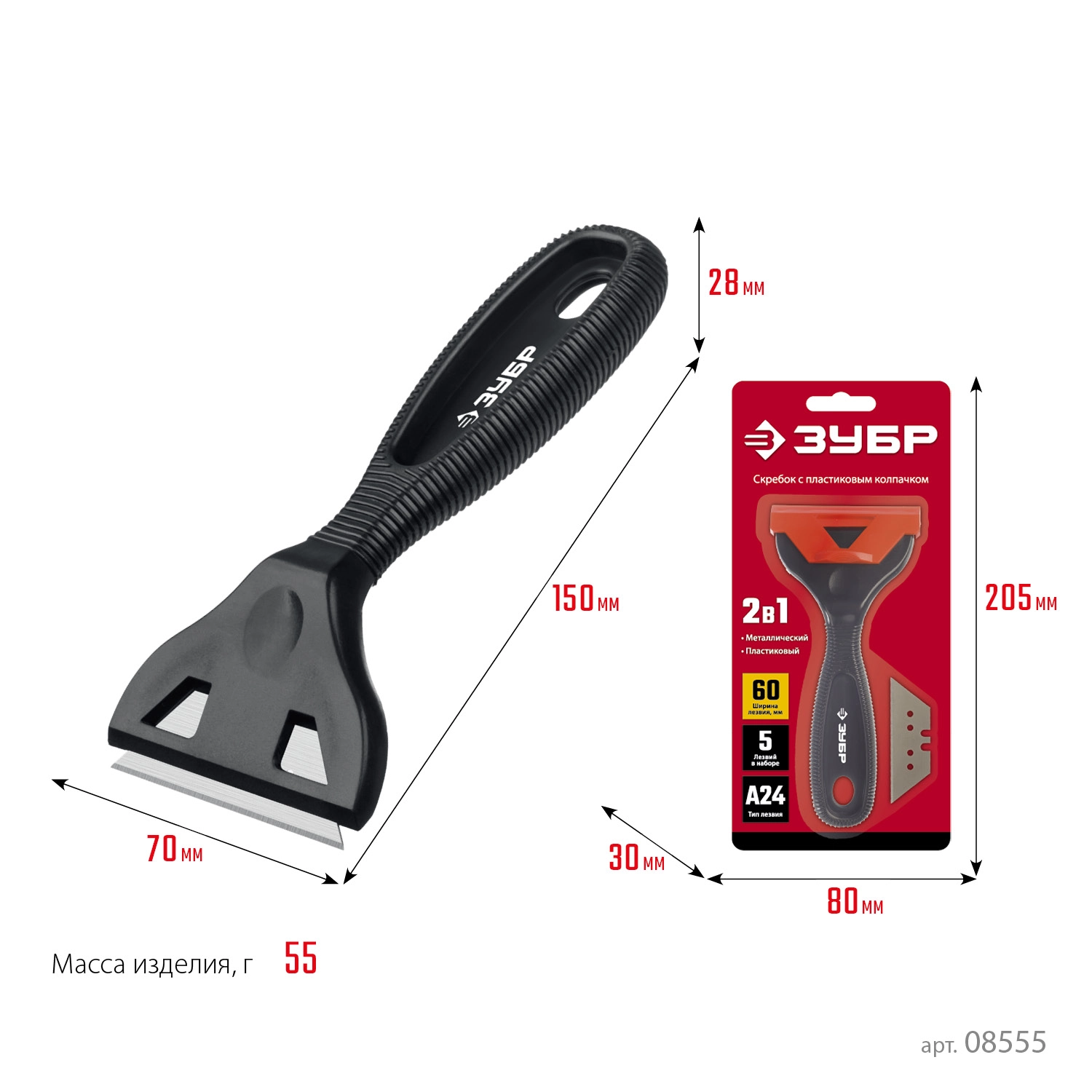 ПроизводителиСкребок пластиковый 60мм, 2 в 1, тип лезвия А24 (08555_z01) ЗУБР