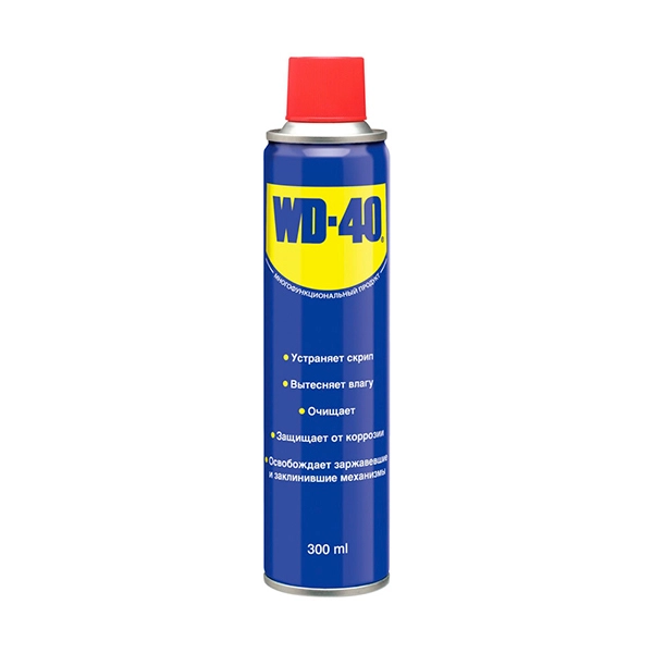 Средство универсальное WD-40 защищает металлические поверхности от образования коррозии, проникает в заклинившие и примерзшие механизмы, освобождая их, смазывает металлические детали и соединения. Основные функции: – Защищает металлические поверхности от коррозии – Устраняет скрип – Смазывает металлические соединения и механизмы, предотвращает трение – Вытесняет влагу – Удаляет масло, жир, копоть и грязь, образовывает защитный слой – Освобождает заржавевшие и заклинившие механизмы, облегчает процесс демонтажа заржавевших крепежных элементов Области применения: – Для автомобиля – В быту и на работе – На даче Рекомендуется для: – Садовая техника, инструменты и оборудование – Подвижные металлические элементы, любые трущиеся детали и узлы – Дверные замки и петли – Электроинструменты – Клеммы и электрические соединения. Электрические контакты в проводке