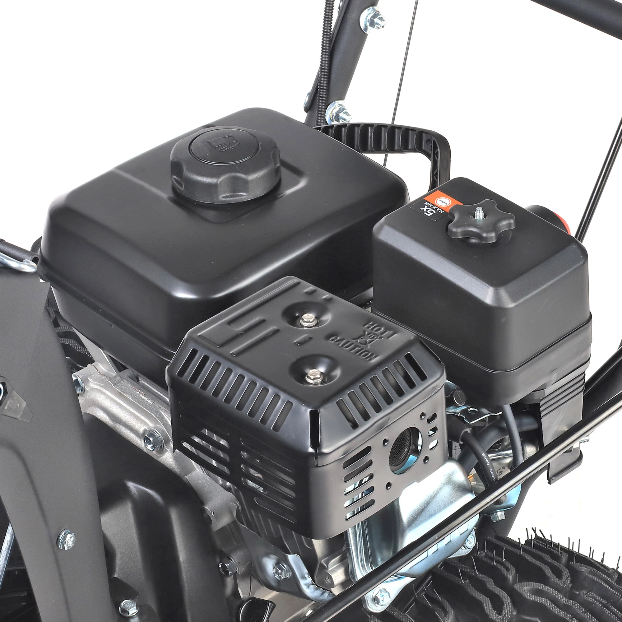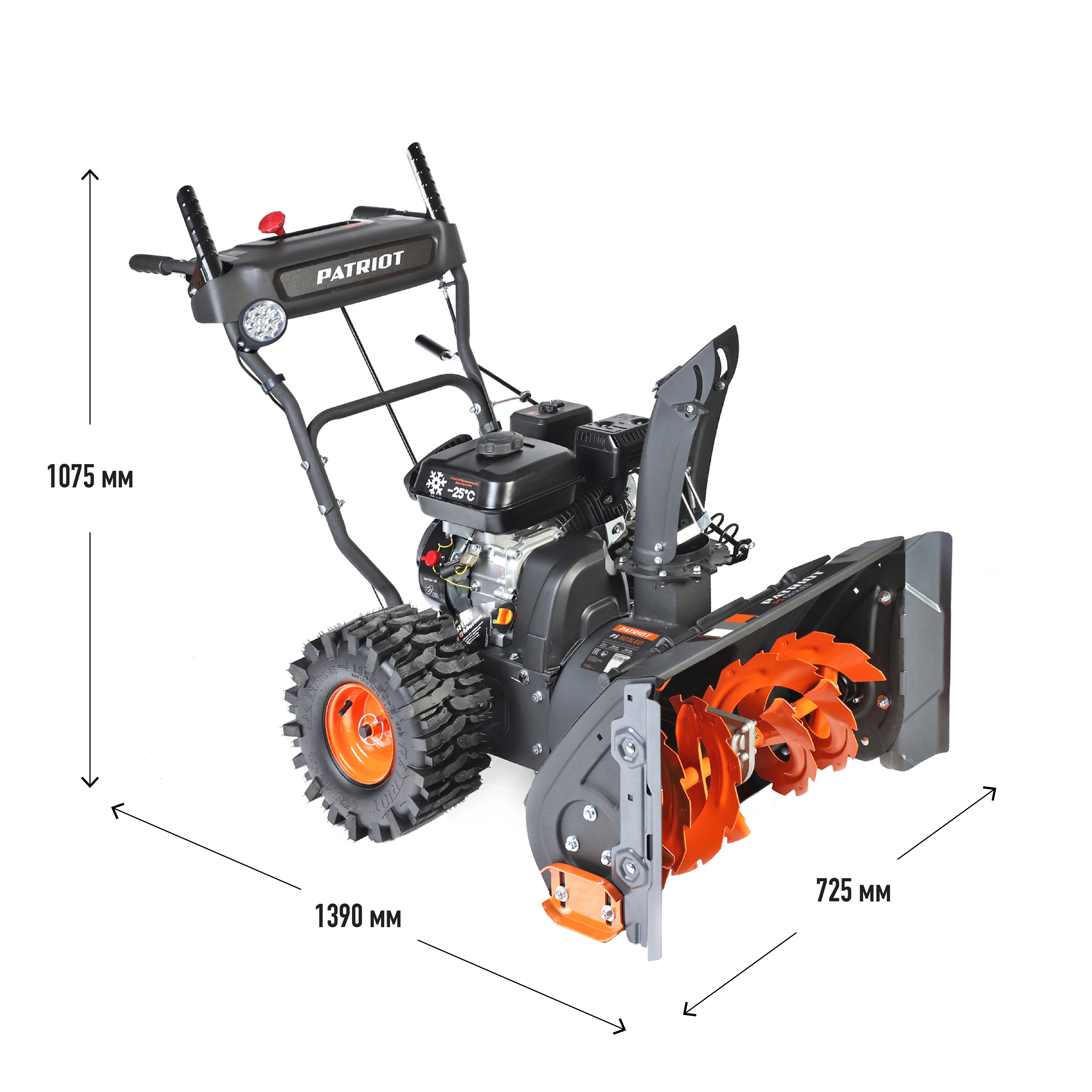 ХарактеристикиАртикул 426109603Страна производства КитайГабариты (ШхВхГ),мм 830х635х615Потребляемая мощность 5150Уровень звуковой мощности, дБ(A) 70Объем топливного бака, л 3.2Мощность, л.с. 7Емкость аккумулятора 212Двигатель/Тактность 4-х тактныйТип топлива бензин АИ-92Стартер ручнойСвеча зажигания F7RTCОбъем заправки редуктора, гр 90Объем масляного картера, л 0.6Ширина ковша, см 66Высота ковша, см 42Диаметр шнека, мм 250Макс. дальность выброса снега, м 10Количество передач 6 вперед/2 назадУгол поворота желоба для выброса снега, ° 190Направление выброса снега, ° 70Регулировка дальности выброса ручнаяНаличие фары естьПодогрев ручек нетДиаметр колес 345Тип колес Пневматические Winter Extreme 2Система шнеков двухступенчатаяМатериал желоба стальТип передвижения колесныйКолеса для перемещения нетКомпактный и легкий в управлении снегоуборщик PATRIOT PS 603 LED прекрасно подходит для очистки дорожек и придомовой территории от снега. Двухступенчатая система со стальным шнеком и регулируемым желобом способна переработать даже толстый слой наста или мокрого снега, а система XTS позволяет увеличить площадь уборки. Созданные для работы в зимних условиях колеса Winter Extreme с гусеничным протектором обеспечат высокую проходимость и маневренность. Управление вынесено на специальную панель, обеспечивающую быстрый доступ ко всем его элементам, а для работы в темное время суток установлена светодиодная фара повышенной яркости.