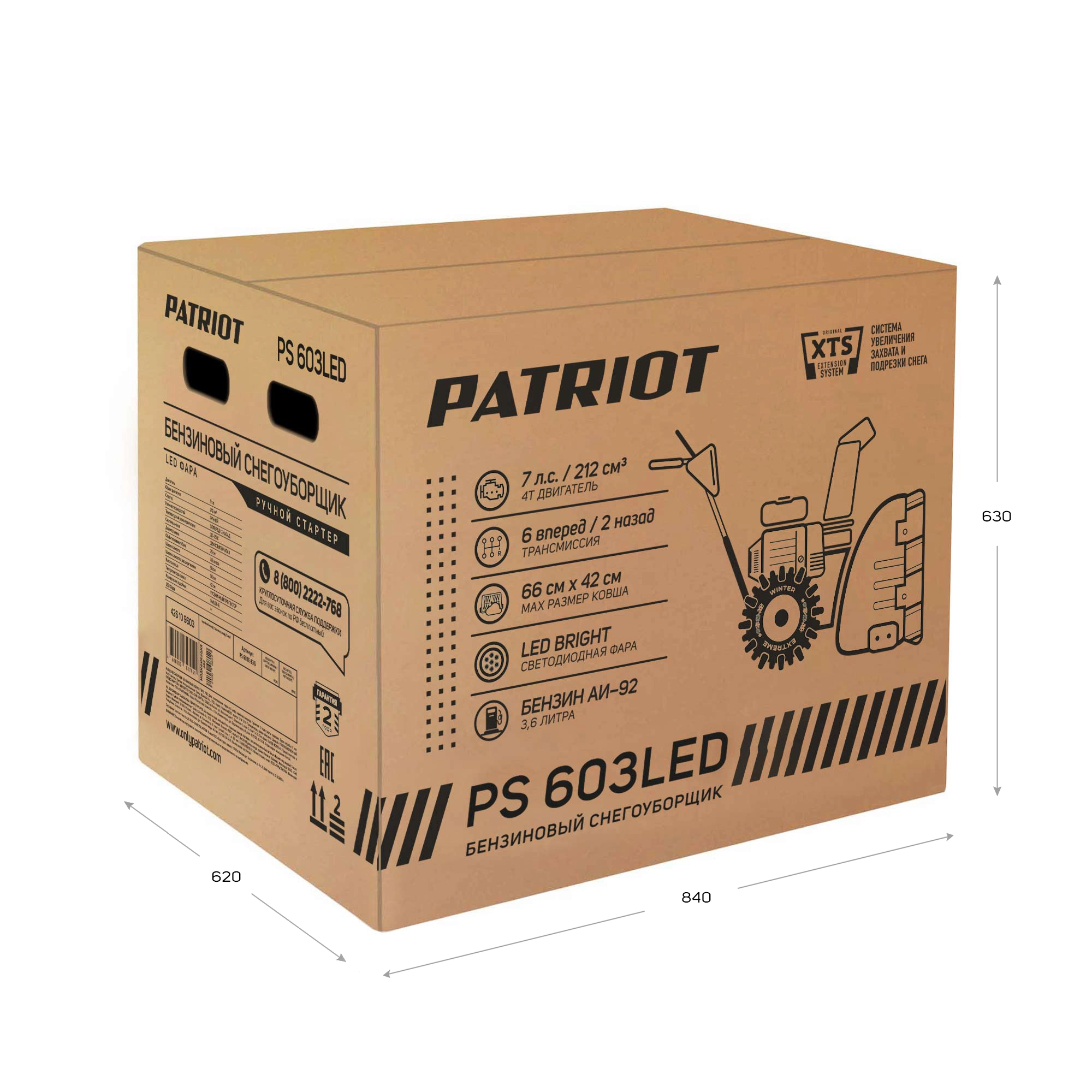 ПроизводителиСнегоуборщик бензиновый PS 603 LED (5,15 кВт В/Ш ковша 66/42см Ø250мм выброс 10м) PATRIOT / EXPERT
