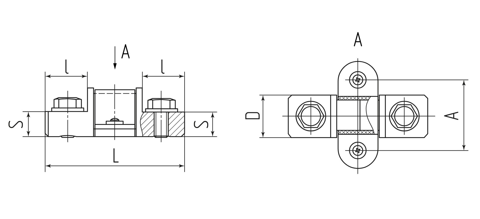 -Предназначены для соединения алюминиевых и медных шин шириной 20, 25 и 30 мм, а также для подключения в единую линию при помощи медных и алюминиевых наконечников, опрессованных на соответствующих кабелях
