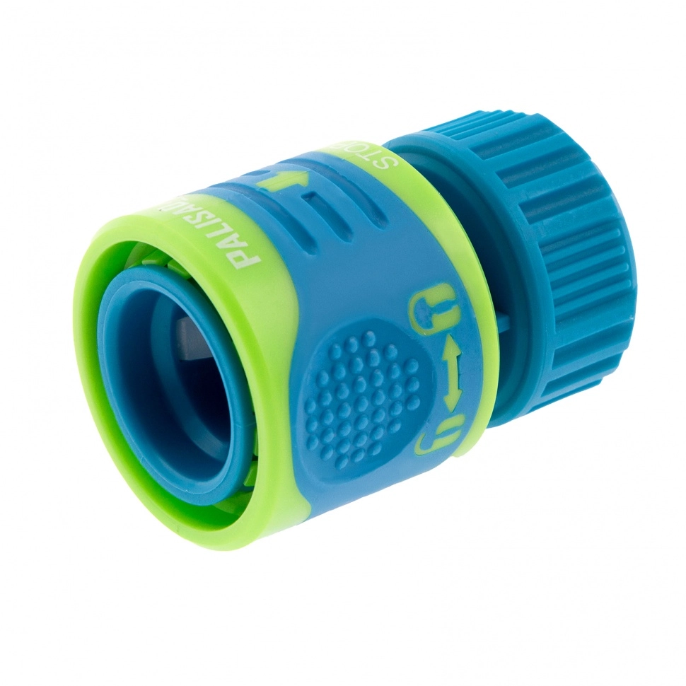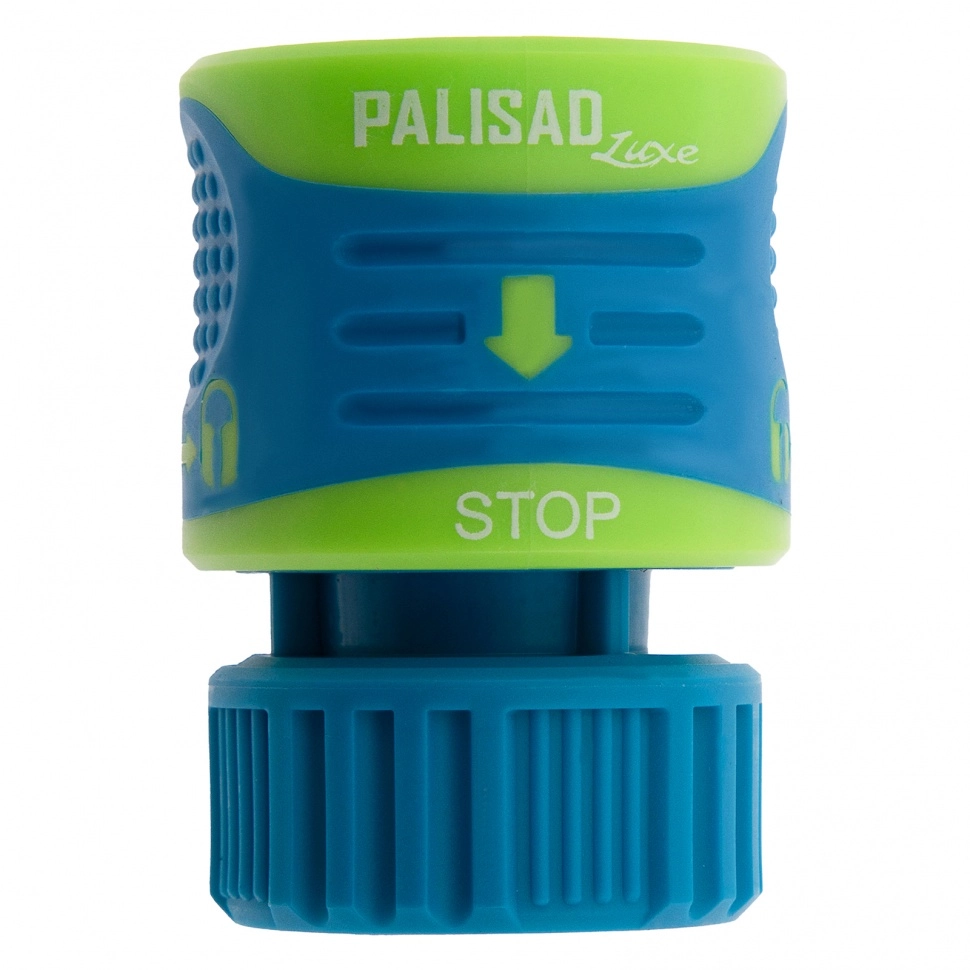 Быстросъемный соединитель Palisad LUXE 66235 с аквастопом, внутренней резьбой 3/4 дюйма, позволяет организовать бесперебойную подачу воды для полива садового или огородного участка.