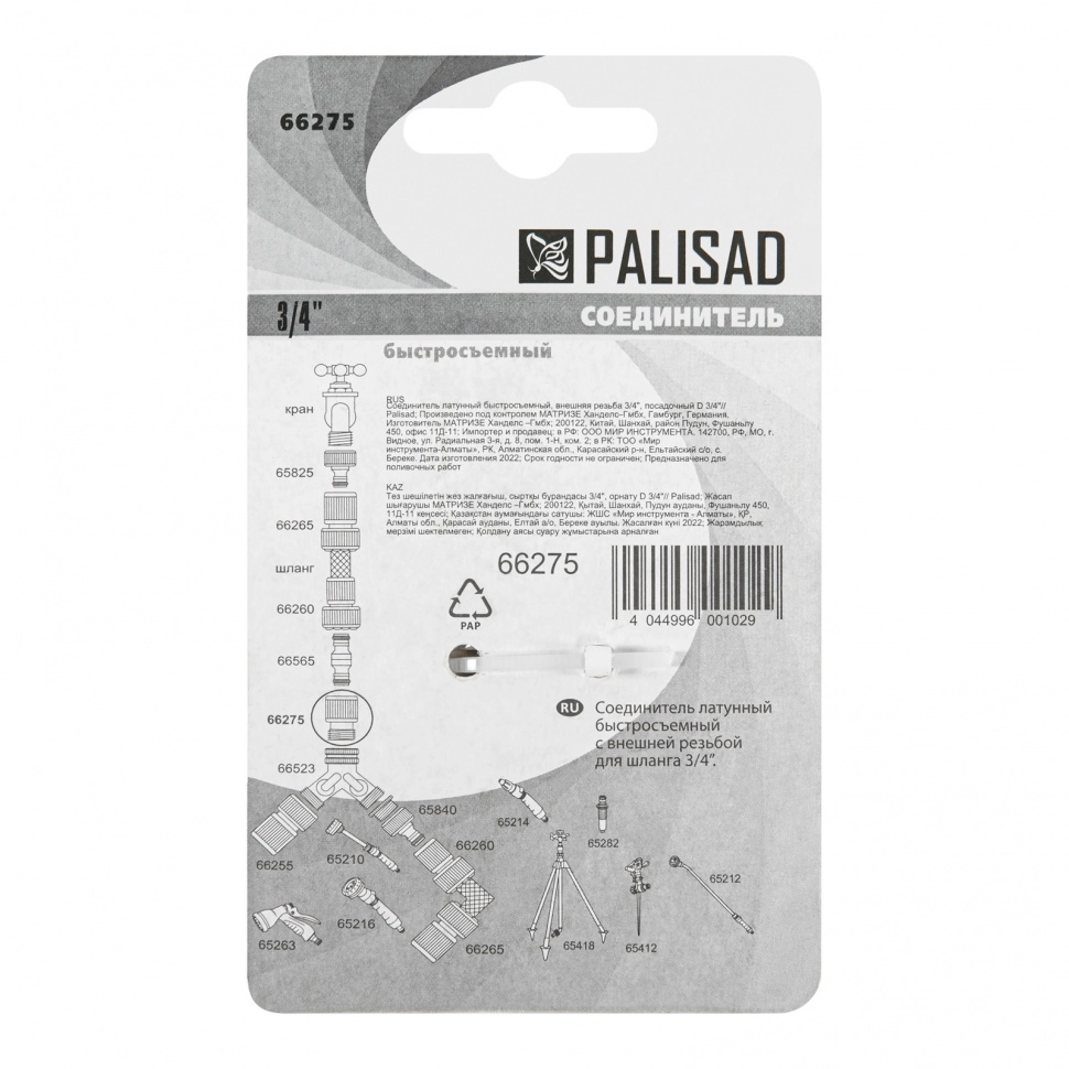 ПроизводителиСоединитель латунный быстросъемный, внешняя резьба 3/4", посадочный 3/4" (66275) PALISAD