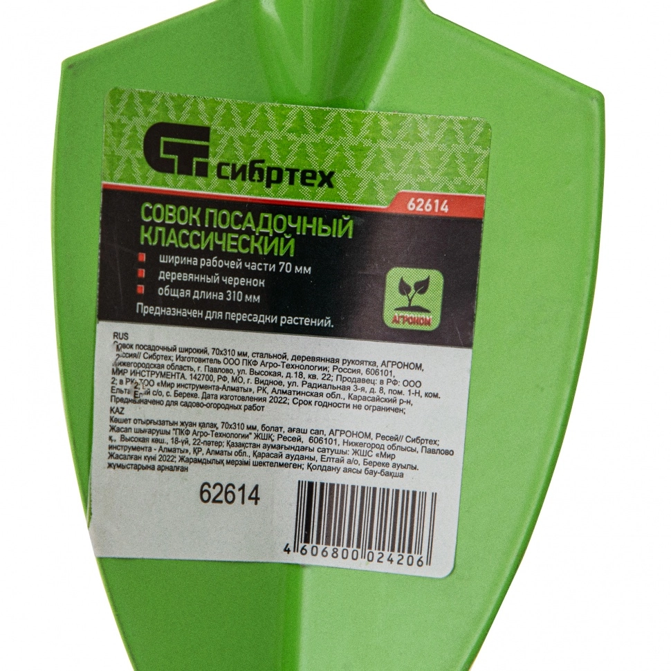 ПроизводителиСовок посадочный широкий, 70х310 мм, стальной, деревянная рукоятка, АГРОНОМ (62614) СИБРТЕХ