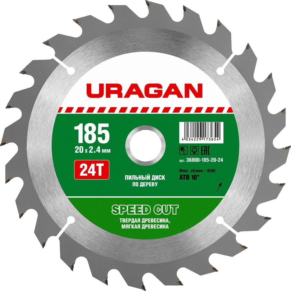 ПроизводителиДиск пильный 185х20х24 по дереву "Speed cut" (36800-185-20-24) URAGAN