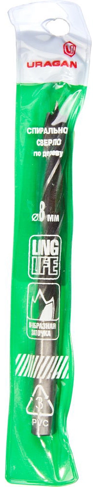ПроизводителиСверло спиральное по дереву, М-образная заточка, сталь 45, URAGAN 29419-110-08, d=8x110мм