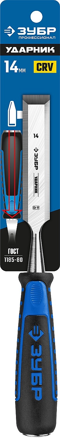 ПроизводителиСтамеска-долото плоская 14мм, комб.ручка, стальной затыл (18097-14_z01) ЗУБР