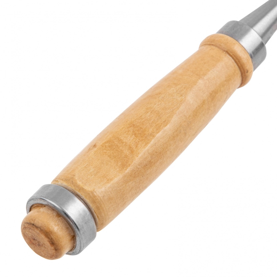 Плоское долото-стамеска 6 мм с деревянной рукояткой предназначено для столярных и плотничных работ- выборка и зачистка небольших прямоугольных пазов, снятия фасок в натуральной древесине любой твердости.