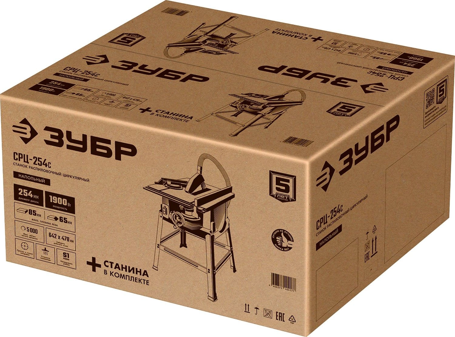 ПроизводителиСтанок распиловочный, напольный СРЦ-254с (1900 Вт, круг 254х30мм, макс. глуб. проп. 85мм, кор.) ЗУБР