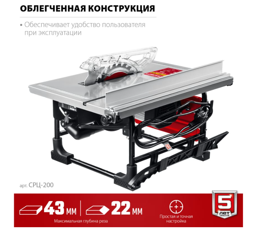 ХарактеристикиАртикул СРЦ-200Бренды ЗубрСтрана производства КитайТип питания сетьПотребляемая мощность, Вт 800Число оборотов холостого хода, об/мин 2950Диаметр пильного диска, мм 200Кейс в комплекте нетОписание товара обновлено 11.09.2025 10:53:07Широкий диапазон возможностей, простая, а значит надежная, конструкция и все необходимые защиты - отличительная черта данного инструмента.Предназначен для распила заготовок из дерева, практически не требуя обслуживания, исключая неправильные действия и обеспечивая отличный результат