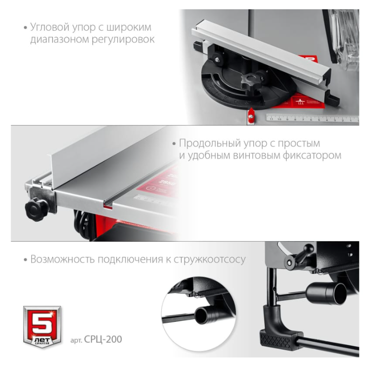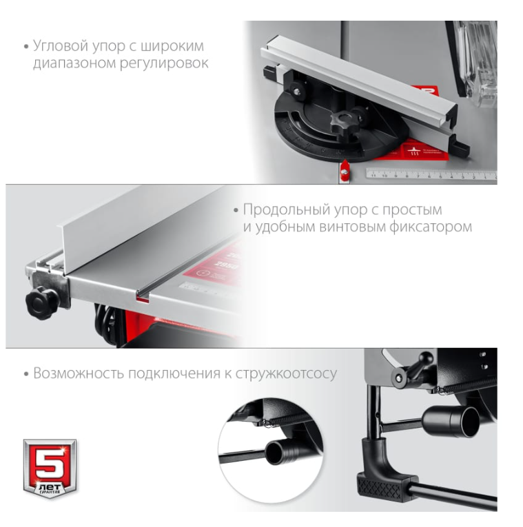 - Регалируемая продольная направляющая с надёжной системой фиксации,