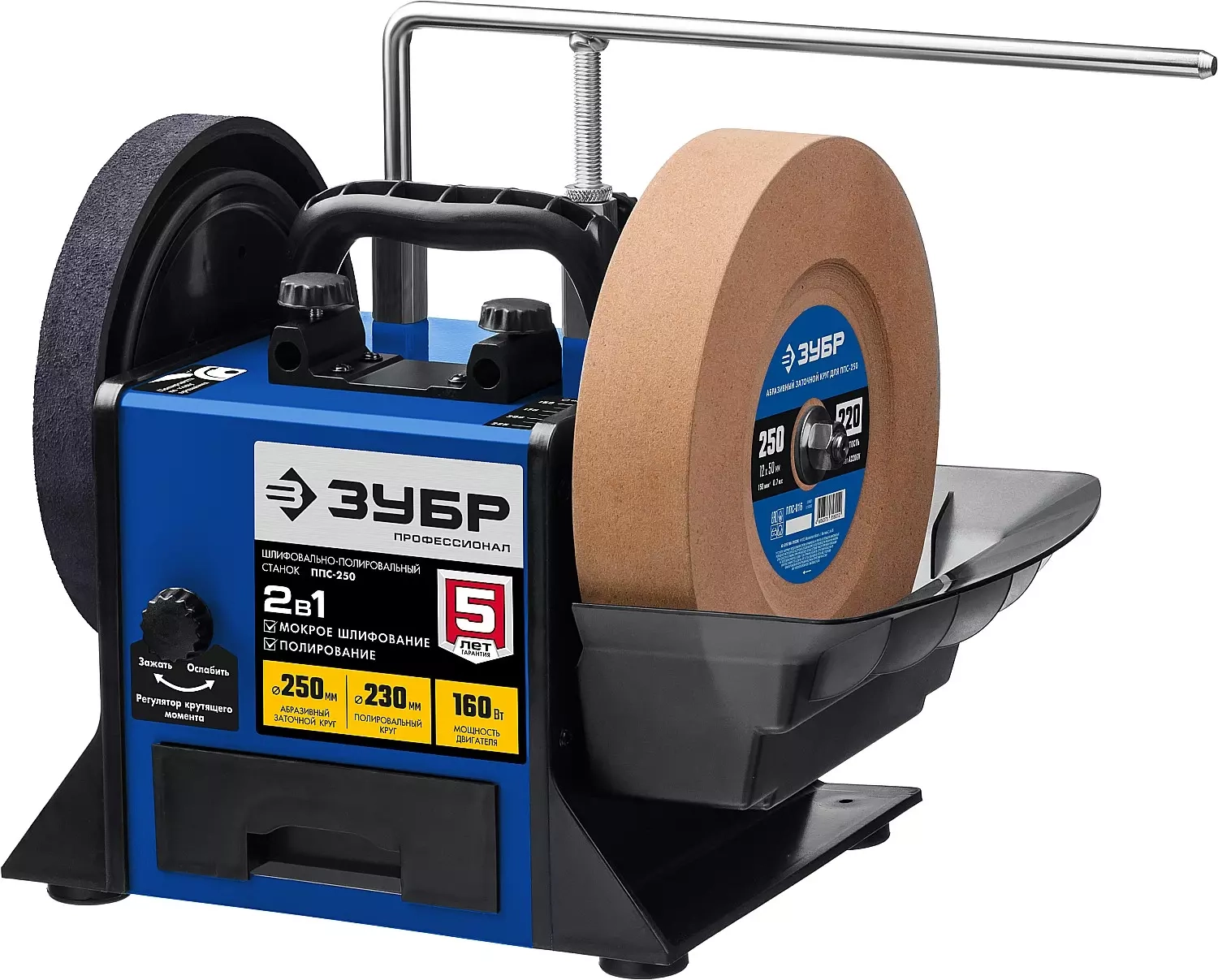 СТАНДАРТУровень качества. При классификации продуктов, имеющих схожее наименование, но обладающие различными потребительскими свойствами мы приняли следующий Вес факторов: 80% - подтвержденный ресурс, 15% - заявленная производительность/скорость, 5% - субъективные ощущения потребителя. ПодробнееКод товара: 0048254(0)ХарактеристикиАртикул ППС-250Бренды ЗубрСтрана производства КитайПотребляемая мощность 160Кейс в комплекте нетСтанок шлифовальный ЗУБР ППС-250, применяется для влажной шлифовки и полирования металлических заготовок и режущего инструмента. Мокрое шлифование и полировальный круг. Бесступенчатая регулировка оборотов. Пылезащищенный выключатель. Компактный и мощный коллекторный двигатель. Широкий ассортимент аксессуаров для заточки. Выдвижной ящик для хранения аксессуаров. Регулируемые направляющие штанги для фиксации вспомогательных приспособлений. КОМПЛЕКТАЦИЯ: