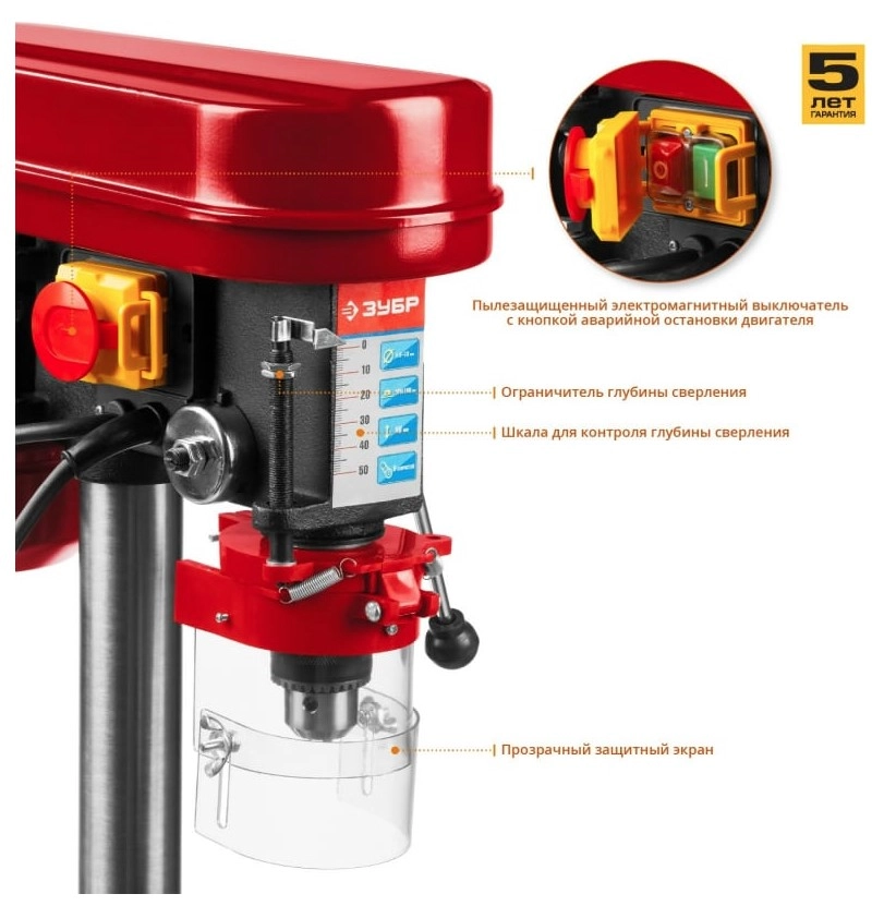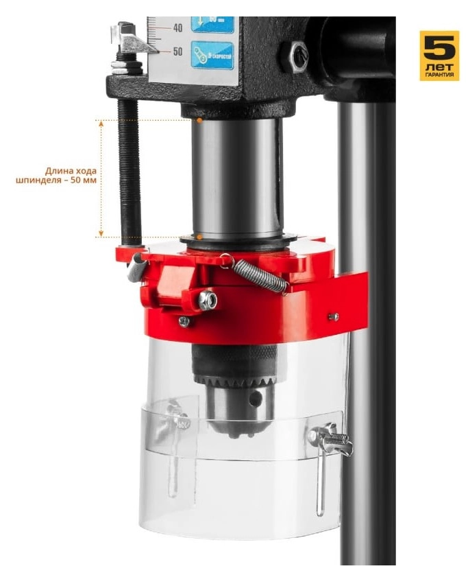 - Прозрачный кожух для защиты оператора от стружки при сверлении;