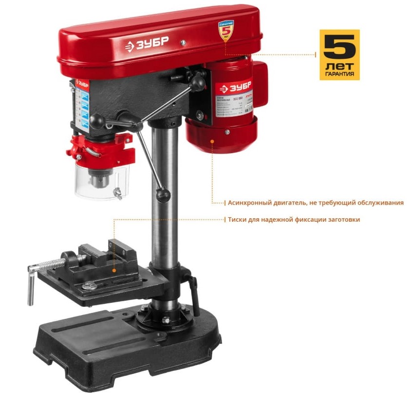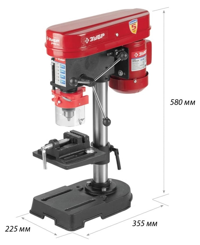 ХарактеристикиАртикул ЗСС-350Бренды ЗубрСтрана производства КитайТип сверлильный станокТип патрона ключевойПотребляемая мощность 350Количество скоростей 5Напряжение 220Кейс в комплекте нетВес 16Мощность 350Материал обработки металлMax диаметр сверла 13Число скоростей 5Система подачи СОЖ НетТип электродвигателя асинхронныйХод шпинделя 50Передача ременнаяMin частота вращения 580Ширина 225Высота 450Частота вращения шпинделя 2600Ширина платформы 200Минимальный диаметр сверла 1.5Максимальная частота вращения 2600Питание от сети 220 В ДаГлубина 350Описание товара обновлено 08.12.2025 13:47:49Данный станок поможет быстро и качественно просверлить отверстия в различных материалах (при установке соответствующих типов сверл). Теперь не нужно удерживать дрель на весу; прижимая заготовку ногой; пытаясь удержать угол сверления. Со станком ЗУБР Вы избежите всех этих трудностей и сможете выполнить работу быстро и качественно