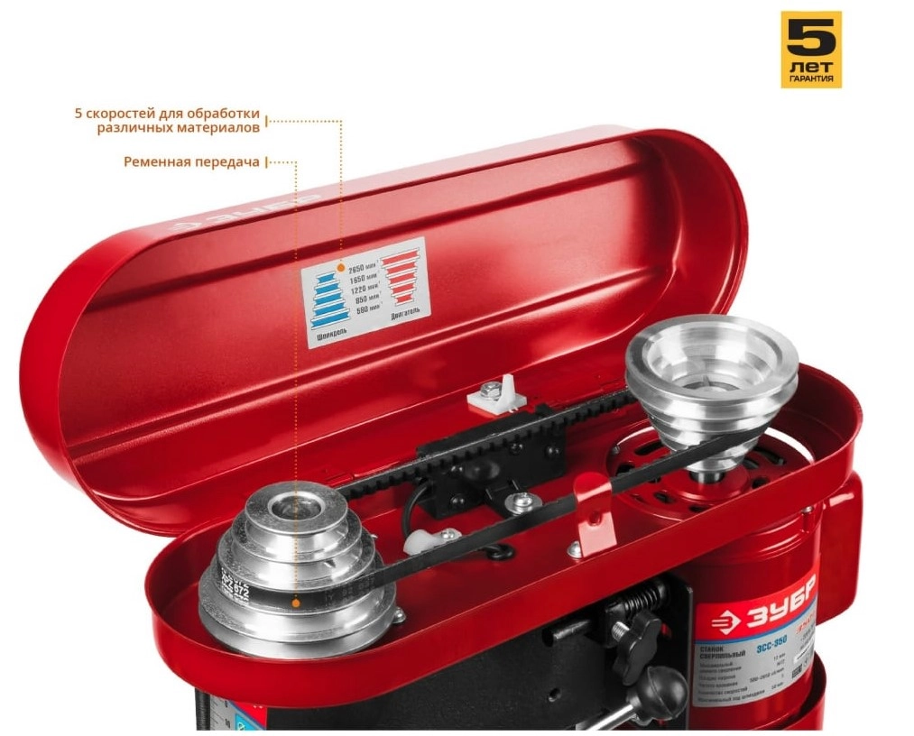 - Ременная передача с 5 скоростями для любых работ с любым материалом;