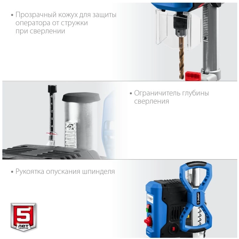 - Прозрачный кожух для защиты оператора от стружки при сверлении